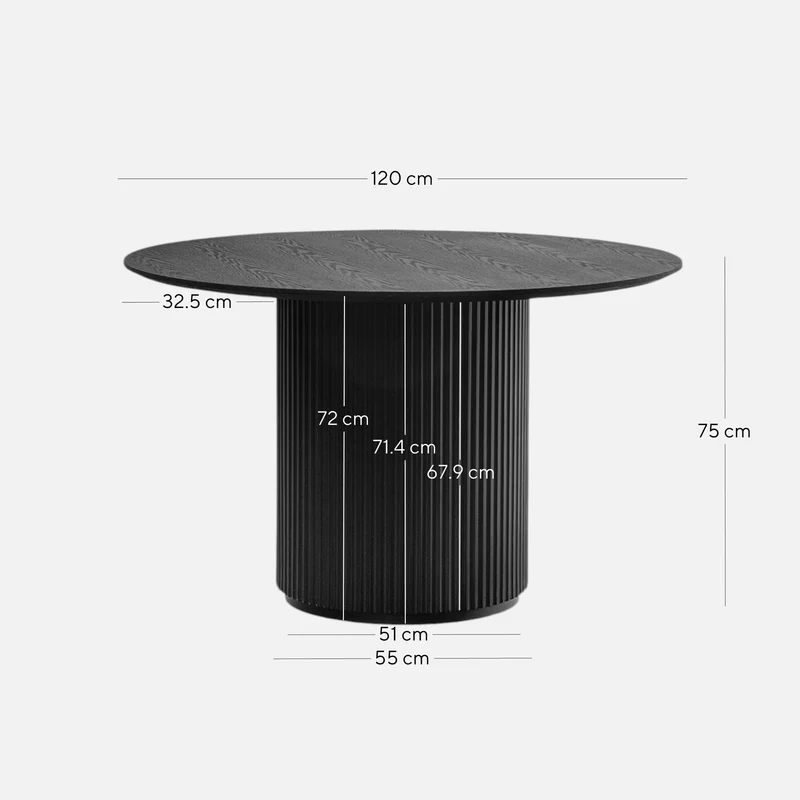CDT6360 DW 1.2m Round Wooden Dining Table – Black In Stock