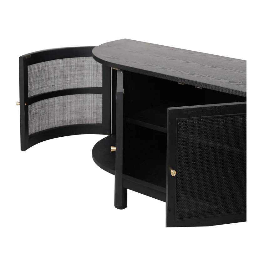 CTV8290 – NI 2.2m Rattan Doors TV Entertainment unit – Full Black In Stock
